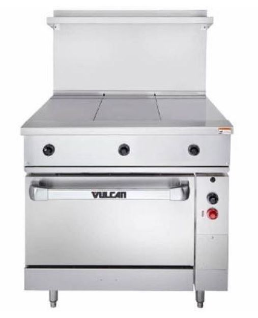 VULCAN ENDURANCE SERIES ELECTRIC RANGE WITH 3 HOT TOPS AND OVEN EV36S-3HT480